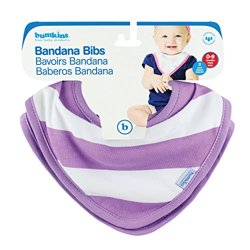 - Bumkins Printed Waterproof Bandana Bib 2 Pack, Purple Stripe (0-9 Months)