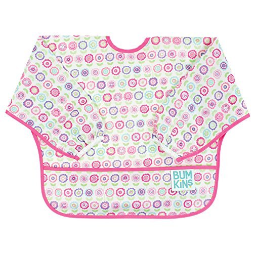 • Bumkins Waterproof Sleeved Bib, Bloom (6-24 Months)