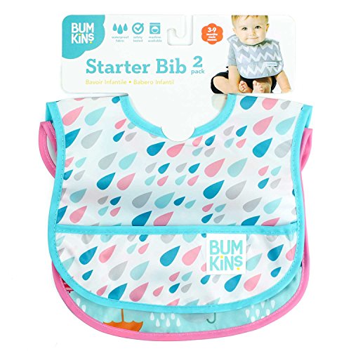 Bumkins Waterproof Starter Bib 2 Pack, Girl (G67-Umbrella/Raindrop) (4-9 Months) by Bumkins