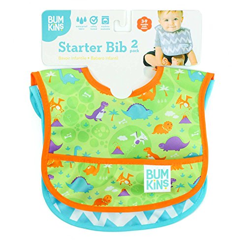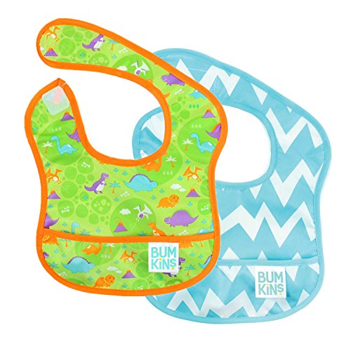 Bumkins Waterproof Starter Bib 2 Pack, Boy (B09-Dinos/Blue Chevron) (4-9 Months) by Bumkins