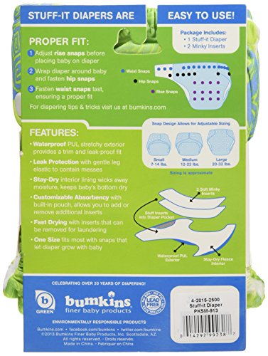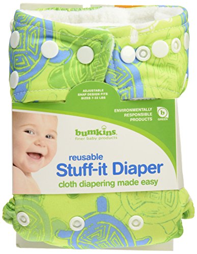 - Bumkins Stuff It Cloth Diaper with 2 Minky Inserts, Green Turtle