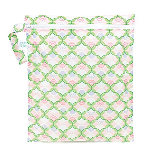 Great for cloth diapering or carrying dirty clothes or wet?swimwear;Zipper closure and snap handle with heat-sealed seams;Made from Bumkins' easy wipe, stain and odor resistant, waterproof fabric;Machine washable, hang dry;Measures 12W x 14L