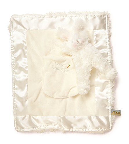 Cute, cuddly and removable wee bunny is snuggled in the pocket."Lulla bunny bye" embroidery.Machine wash cold on gentle cycle.Tumble dry with no heat.Size: 30cm x 36cm .