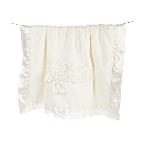 Endearing wee lamb applique holds its own silky satin blankie, Front is cozy fur, reverse is snuggly, curly fur, Sweet satin edging, Size: 28" x 34", Front is cozy fur; reverse is snuggly, curly fur