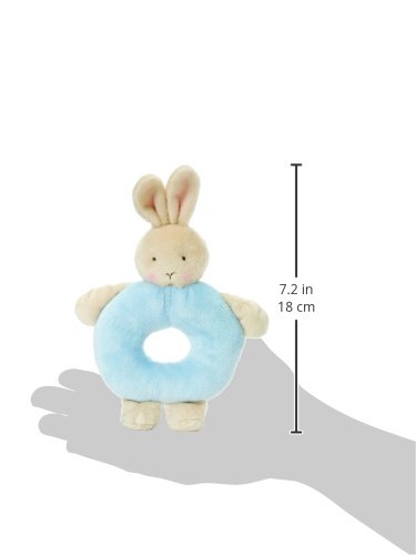 100% knitted polyester;It is imported;Bunny ring rattle, Pastel blue, Super soft, Machine wash, tumble dry low, Measures 6