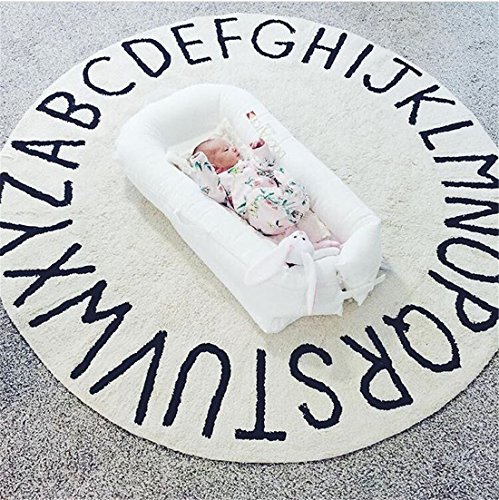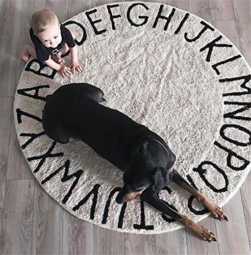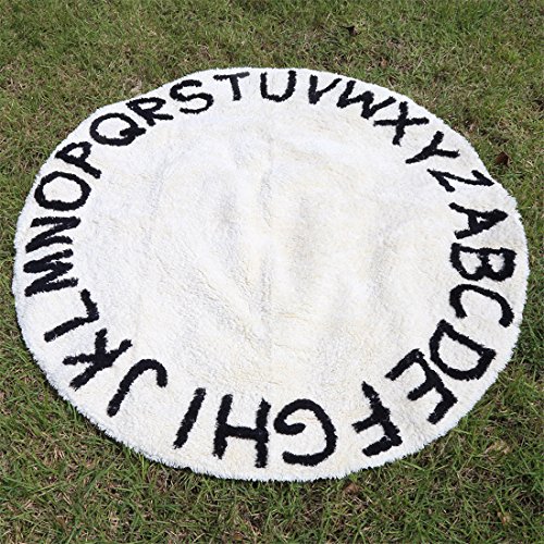 Burning Go カーペット ベビーマット キッズプレイマット ABC アルファベットラグマット 北欧風 シンプル ラウンド 敷マット ベロア調 オムツ替えマット インテリア モノトーン (ホワイト)