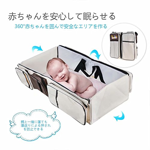 - 赤ちゃんの急なおむつ替えも楽々!どこでもマザーズバッグがベビーベッドに早変わり。旅行や帰省などの途中で、公共の場所でも小さな空間で赤ちゃんに快適な眠る環境を与えることができます。