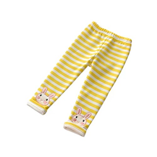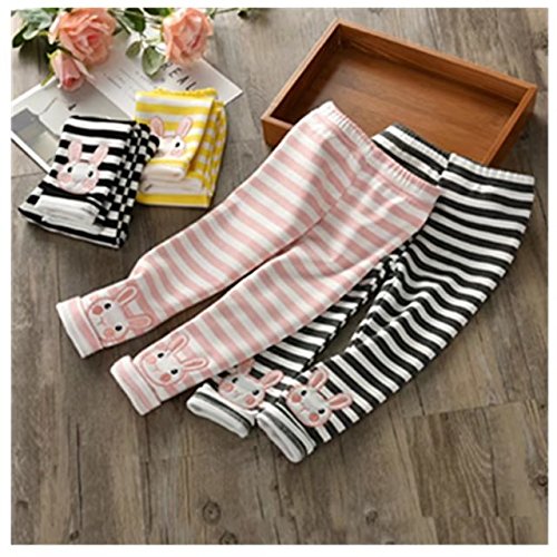 Burning Go キッズパンツ 裏起毛 もこもこ ストライプ 女の子 ウサギ 秋冬 ロング丈