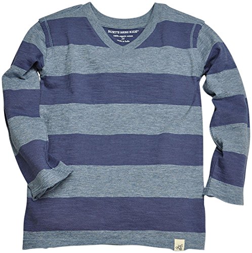 Burtの蜂ベビーローエッジのラグビーシャツベビー – ブルースモークを縮小」の100 %オーガニックコットンのスラブジャージー生地を使用したラグビーストライプVネックが素敵にお似合いでしょう生のエッジディテールの袖と裾、特別なタッチであり、HEATHERDの糸がsuper-duperソフトです機能が導入されています。スラブジャージー生地の生のエッジのディテール0
