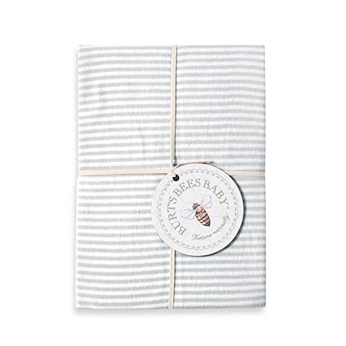 Ultra Soft, Grey Stripe Fitted Crib Sheet, 28 W x 58 L x 5.5 D by Burt's Bees
