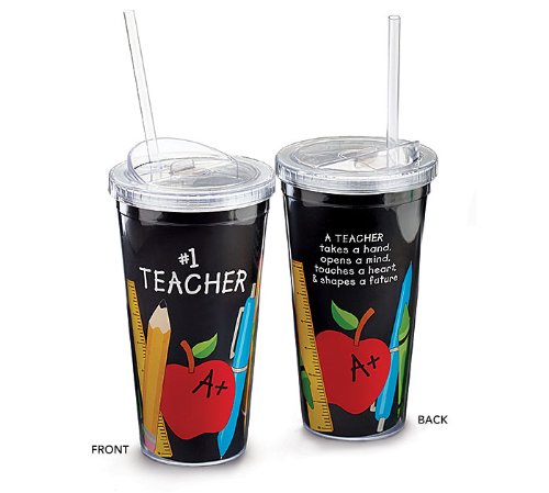 #1 Teacher Acrylic Cup;Holds up to 20 oz.;Measures: 7?H x 4W x 3?Opening;Slide the tab open/close or use reusable, acrylic straw.;Hand Wash Only.
