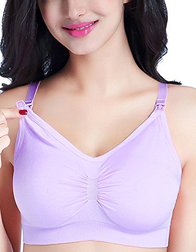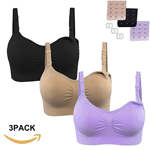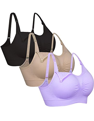 Burvogue授乳ブラジャーなしワイヤーマタニティブラス3枚セット (Medium, 黒+スキン+ライトパープル)