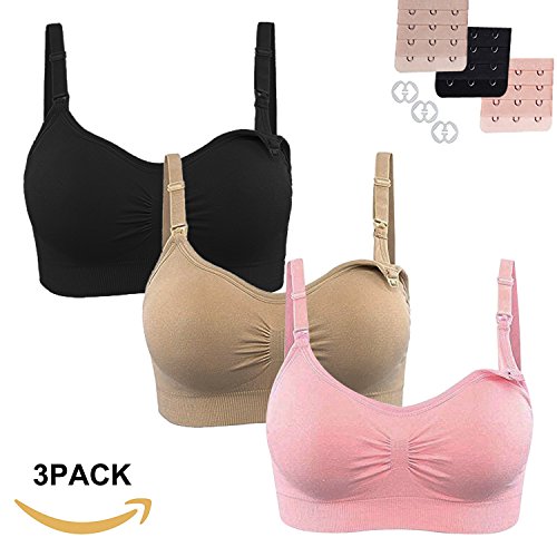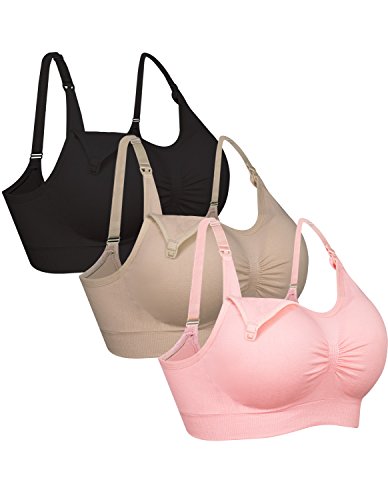 Burvogue授乳ブラジャーなしワイヤーマタニティブラス3枚セット (Small, 黒+ピンク+スキン)