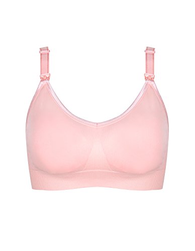 Burvogue女性フロントオープン授乳用の妊婦用ブラジャー (Medium, スキン+ピンク1)