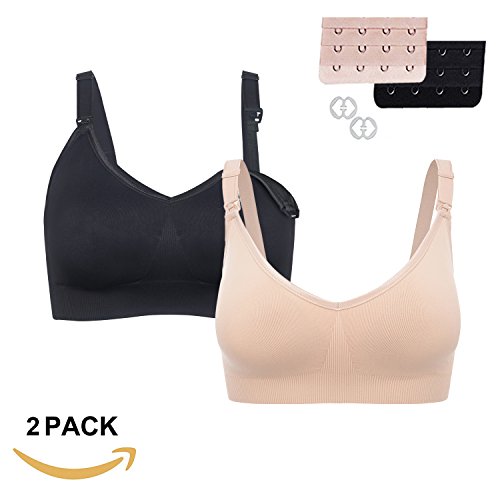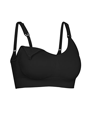 Burvogue女性フロントオープン授乳用の妊婦用ブラジャー (Large, ブラック+スキン1)