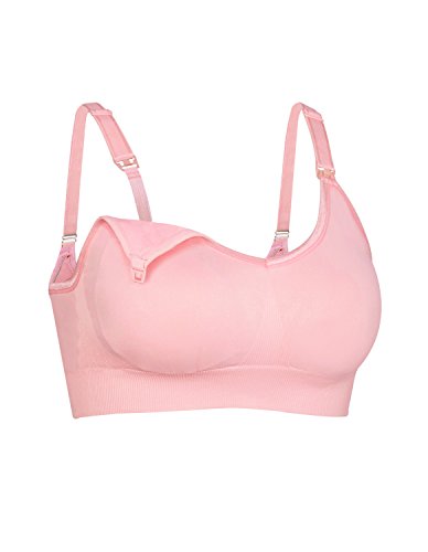Burvogue女性フロントオープン授乳用の妊婦用ブラジャー (Medium, ブラック+ピンク1)