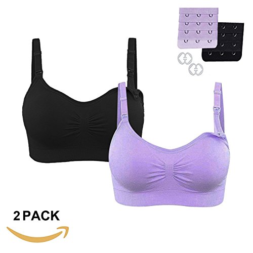 Burvogue授乳ブラジャーなしワイヤーマタニティブラス3枚セット2枚セット 1枚セット (M, 黒+ライトパープル)