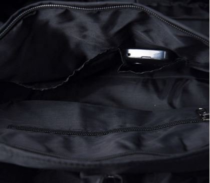 ぱっと見は一つのバッグに見えますが、実は本体のサイドに独立した大きな二つのポケットがあります。