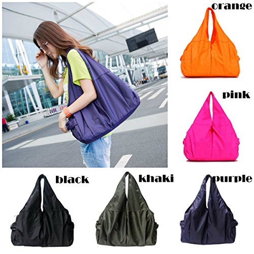 【Buy the world】 レディース メンズ 軽量 ナイロン マザーズバッグ 黒 紫 ショルダーバッグ ハンドバッグ トートバッグ オレンジ