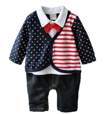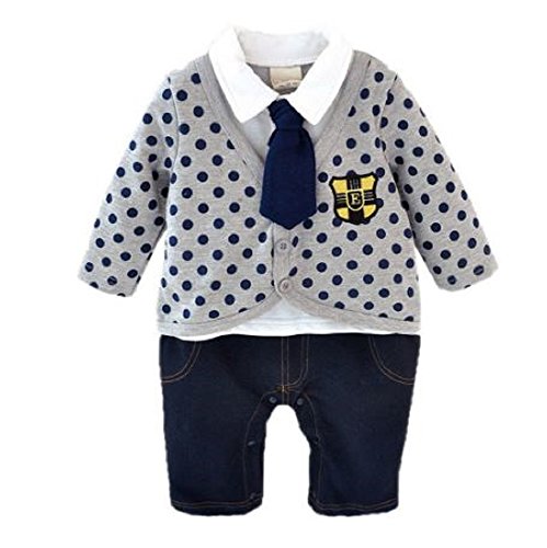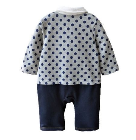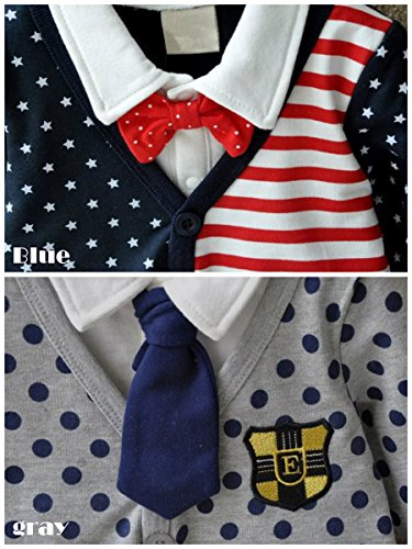 【Buy the world】 ベビー フォーマルウェア カバーオール ネクタイ 蝶ネクタイ コットン 赤ちゃん ボディスーツ ネイビー×レッド 90