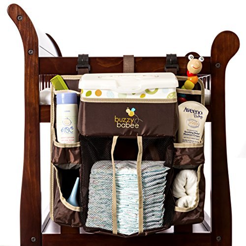 ??NEW & EXCLUSIVE TO AMAZON - Easily access all your baby changing needs without taking your eyes off your precious loved one. Ideal size for newborns and babies up to 18 months ***Please review sizing specifications meet your requirements prior to purchase***;??Main shelf with inner velcro strap to keep items secure and stop from sagging (a major problem with other organizers).;??Large mesh opening to hold an ample amount of diapers and keep them securely in place for quick access.;??Strong hooks to secure to any crib or change table with a velcro strap located in the middle to prevent sliding along crib.;??SAVE 25% on your second Buzzy Babee nursery organizer automatically when you purchase 2 (no promo code required) A great gift idea for friends and family