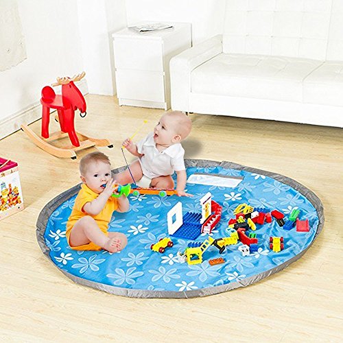 Domonおもちゃ片付ける収納袋 子供プレイマット 直径150㎜(ブルー)
