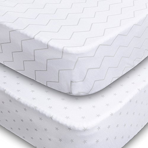 - Crib Sheets 2 Pack Fitted Soft Jersey Cotton Sheet Bedding with Unisex Chevron and Stars Custom Design Fits Standard Mattress for Babies and Toddlers