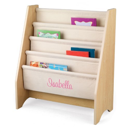 KidKraft Personalized Natural Sling Bookshelf with Pink Script - Isabella