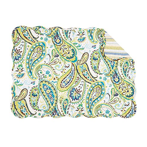 あなたのテーブルトップのグリーン、イエロー、ブルー、エミリーとサイズ調整可能なブラウンペイズリー柄のプレイスマット。ストライプパターンでコーディネートへの逆colorwayの追加のスタイリングオプションを提供しています。この6個の綿のプレースマットは洗濯機で洗濯可能。