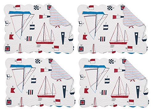 C & F WindwardポートSailboats BuoysフラグNautical Set of 4コットンリネンプレースマット13 x 19 "