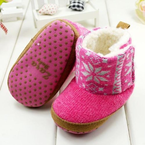 (セ・ミニョン)C'est mignon ベビーシューズ ファーストシューズ ブーツ マジックテープ スノー柄 ピンク (11cm)