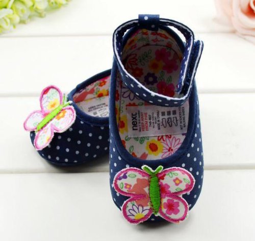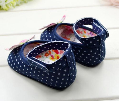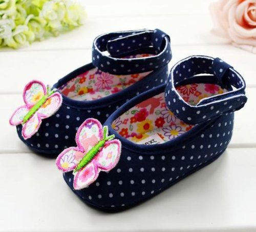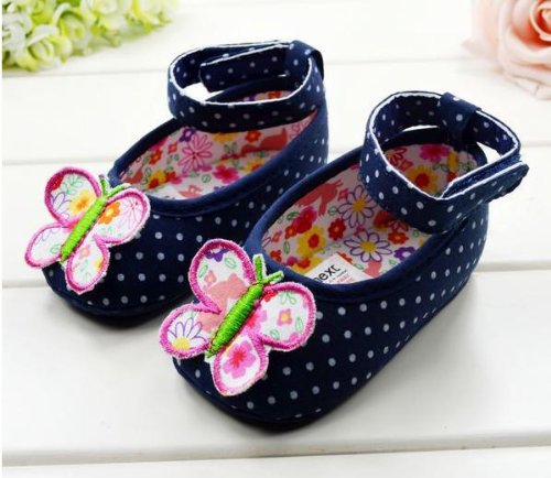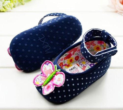 (セ・ミニョン)C'est mignon ベビーシューズ ファーストシューズ ストラップ 水玉 蝶々 ネイビー (12cm)