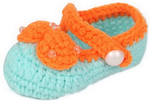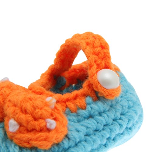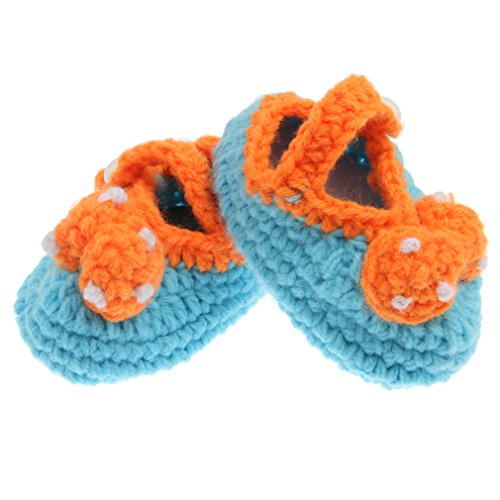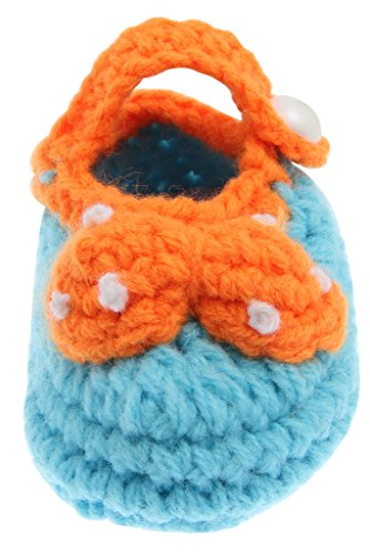 C-Princessベビーシューズ 靴 ファーストシューズキッズ 赤ちゃん 新生児 子供用 男の子 女の子 お洒落 出産祝い 手編み 毛糸 手作り ニット 超可愛い 小花デザイン フラワー カラフル (3ライトブルー)