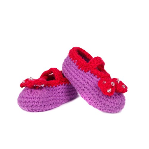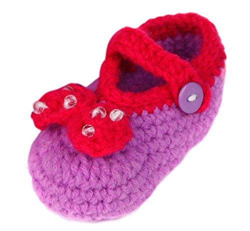 C-Princessベビーシューズ 靴 ファーストシューズキッズ 赤ちゃん 新生児 子供用 男の子 女の子 お洒落 出産祝い 手編み 毛糸 手作り ニット 超可愛い 蝶結び飾り ボタン付き (3パープル)