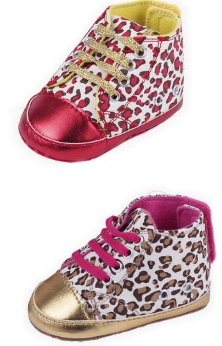 C-Princess 2色入りセット春秋冬シーズン赤ちゃん用シューズ ベビーシューズ ソフト底 快適スニーカー 可愛いヒョウ柄デザインのキッズ スニーカー 女の子向き 赤ちゃんシューズ (3#12-18 Months (13CM))