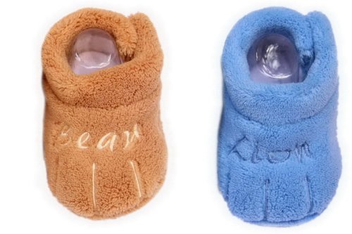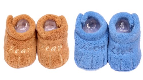 C-Princess 2ペア組セット秋冬赤ちゃんシューズ11cm ベビー用ファーストシューズ 歩行靴 新生児0-12ヶ月ベビーに 柔らかいサンゴフリース製赤ちゃん防寒靴 可愛い小動物の足柄デザイン 2色入り
