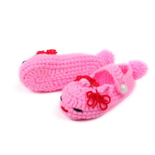 C-Princess 春秋 赤ちゃんシューズ11CM 新生児 幼児 ベビーシューズ 毛糸 かぎ針編み可愛い立体リボンデコデザインのベビーファーストシューズ 歩行靴 靴ひも付き 軽量タイプ 手編みベビー靴 (2ピンク)