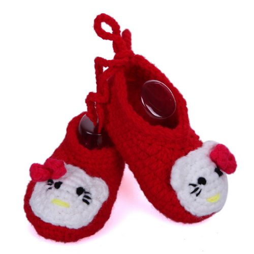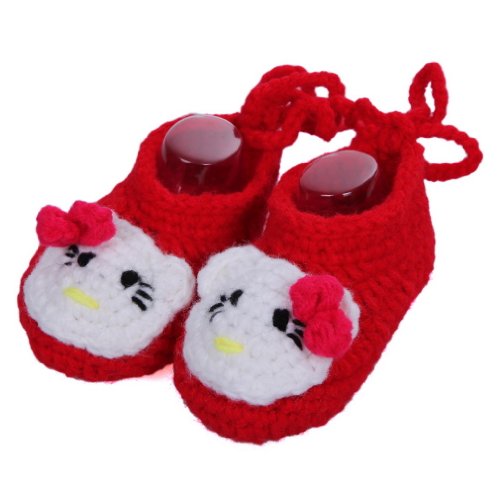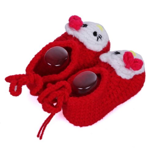 C-Princess 春秋赤ちゃんシューズ11CM 新生児 幼児 ベビーシューズ 毛糸 かぎ針編み可愛い立体猫デコデザインのベビーファーストシューズ 歩行靴 靴ひも付き 軽量タイプ 手編みベビー靴 (2レッド)