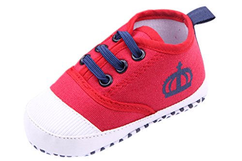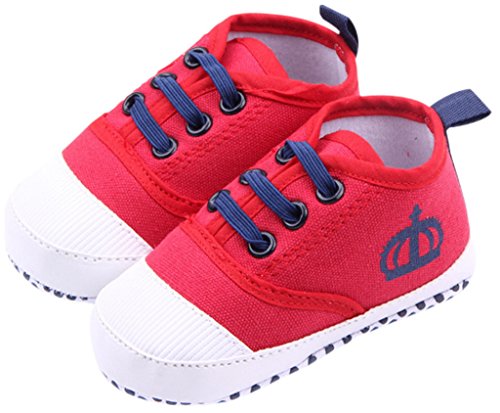 C-Princessベビー靴 キャンバスシューズ スニーカー 赤ちゃん キッズ 女の子 子供 クラウン柄 かわいい カジュアル スポーツ 滑り止め レッド 11cm