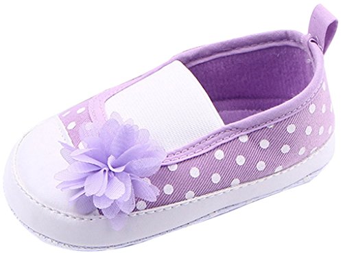 C-Princess 可愛い お花 水玉柄 子供靴 ベビー 赤ちゃん ファーストシューズ スリッポン ローファー 歩行靴 女の子 新生児 出産祝い (12cm, Aパープル)