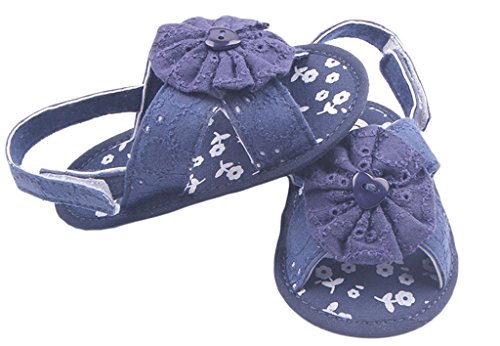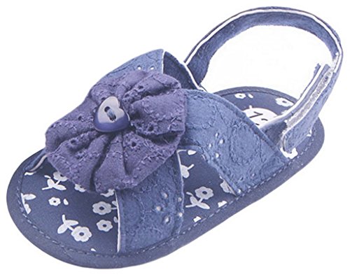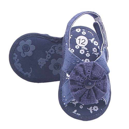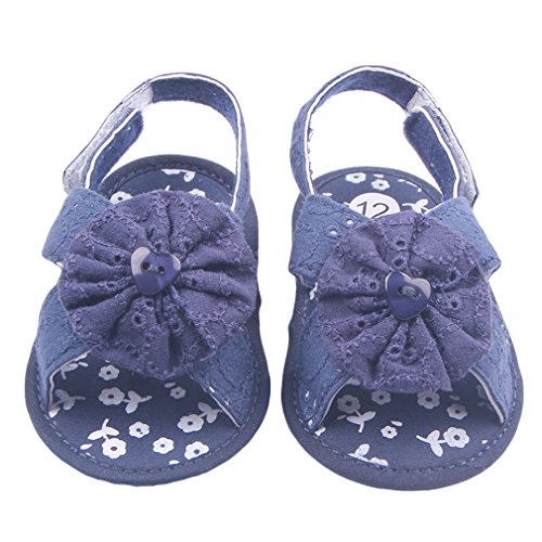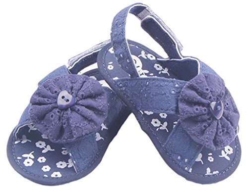 C-Princess お花モチーフ 可愛い ベビーシューズ 赤ちゃん サンダル 子供 キッズ 女の子用 歩行靴 真夏靴 マジック留め カジュアル お出かけ (12cm, Eネイビー)
