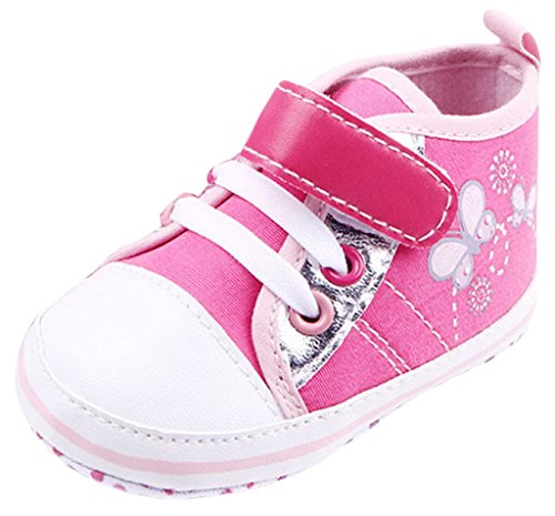 C-Princess ベビーシューズ ファーストシューズ スニーカー 歩行練習 子供用 キッズ 女の子 赤ちゃん 蝶飾り かわいい 柔らかい 出産祝い (13cm, Bローズ)