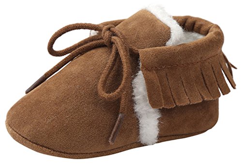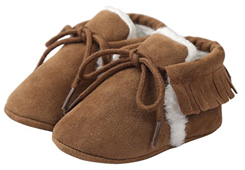 C-Princess 幼児 キッズ ルーム シューズ ファーストシューズ 新生児 赤ちゃん ベビー靴 歩行サポート フリンジ 内ボア 防寒保温 出産祝い ブラウン 11cm