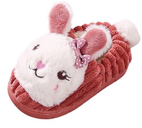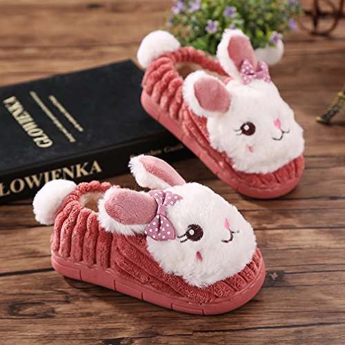 C-Princess 子供 キッズ用 ルームシューズ スリッパ アニマル 動物 ウサギ 可愛い ベビーシューズ 室内履き 幼児 女の子 防寒 あったか 冬 レッド 内寸16cm