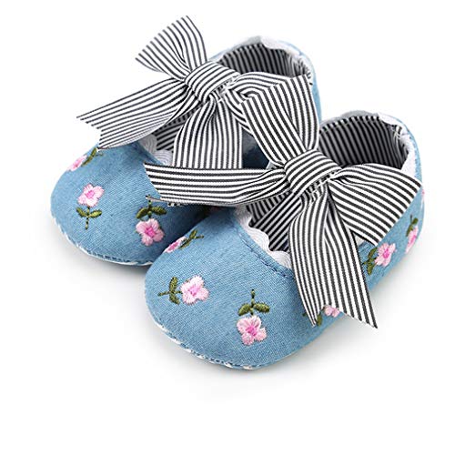 C-Princess ベビー靴 ファーストシューズ ルームシューズ サンダル 赤ちゃん 新生児 女の子 お姫様 歩行練習 蝶結び ストライプ 可愛い 出産祝い ブルー 12cm