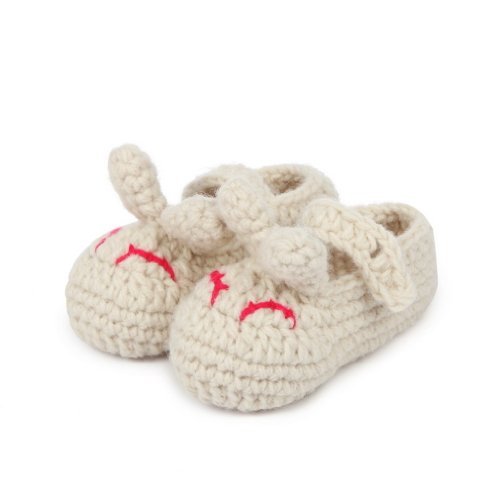 C-Princess手編み風 可愛い柄 新生児 ベビーニットシューズ 11cm 0-18ヶ月赤ちゃんに 出産お祝いプレゼントにも ファーストシューズ ボタン 兔子 (ライトグレー)