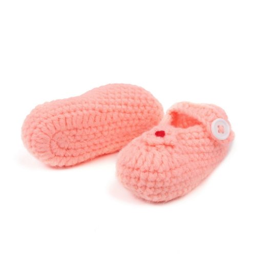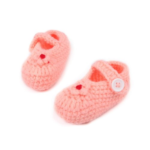 C-Princess手編み風 可愛い柄 新生児 ベビーニットシューズ 11cm 0-18ヶ月赤ちゃんに 出産お祝いプレゼントにも ファーストシューズ ボタン 小花 (ダークピンク)