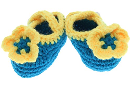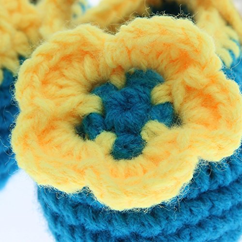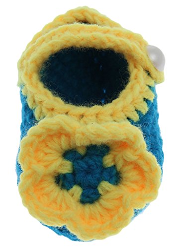 C-Princess 春秋シーズン 赤ちゃんシューズ11cm 新生児 幼児ファーストシューズベビー 毛糸 かぎ針編み可愛い1つ花デコデザインの子供用歩行靴 軽量タイプ 手編みキッズ靴 (1ブルー)