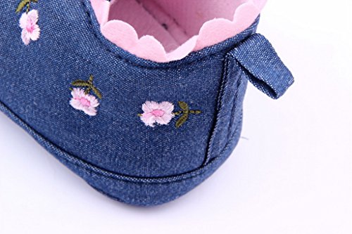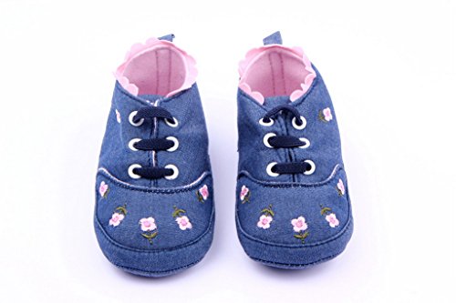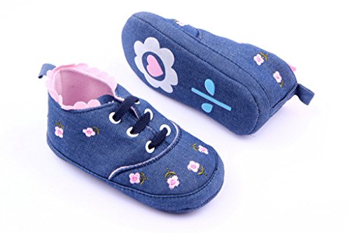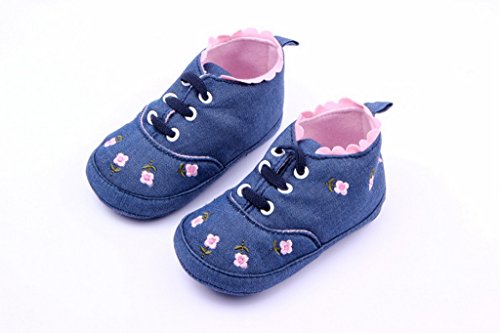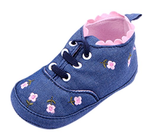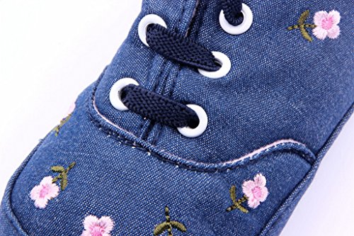 C-Princessベビー靴 ファーストシューズ スニーカー 刺繍 小花柄 デニム かわいい 幼児 赤ちゃん 女の子 キッズ 子供用 出産お祝い (10.5cm, Aブルー)