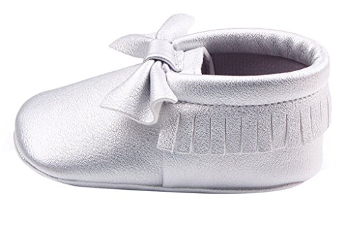 C-Princess ベビーシューズ ファーストシューズ 赤ちゃん 女の子 お姫系 子供靴 フォーマル かわいい 蝶結び飾り付 結婚式 入園式 お祝い (11cm, Eシルバー)